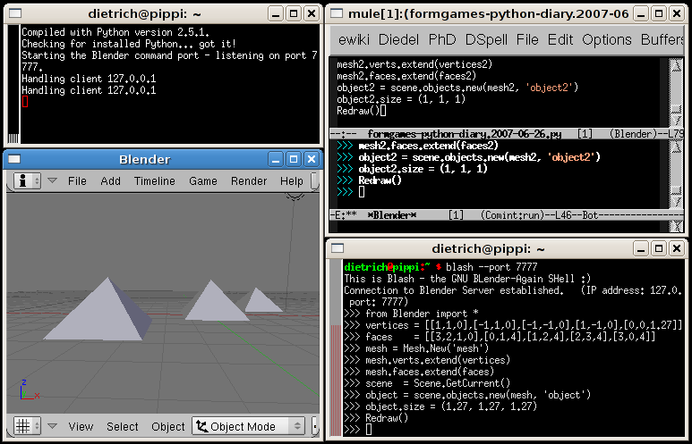 - blash can be used with the emacs python mode - the result is a formidable Blender Python development environment.